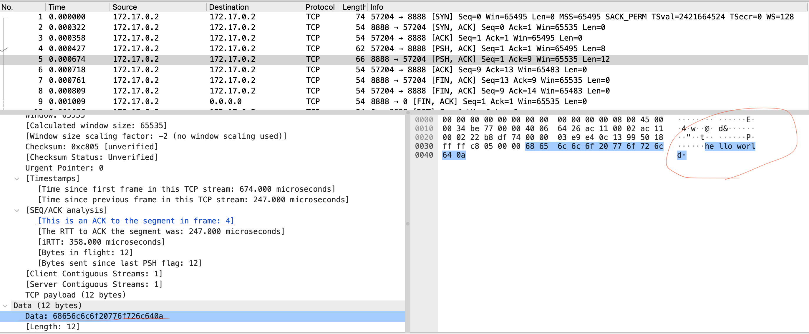 Program->>Client: PSH+ACK ("hello world") (lo)